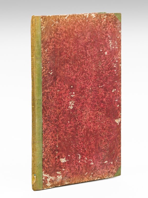1 vol. in-8 reliure de l'époque demi-toile verte, Chez Ladvocat, A Paris, 1821, 1 f., 18 pp. L'auteur anonyme de cette prosopopée (Vasseur, selon Barbier) en appelle aux droits de l'Eglise gallicane pour rejeter l'usage de l'eau du Jourdain au baptême du Duc de Bordeaux. Etat très satisfaisant (reliure frottée, bon état par ailleurs) pour cette curieuse et rare brochure. Barbier, IV, 459