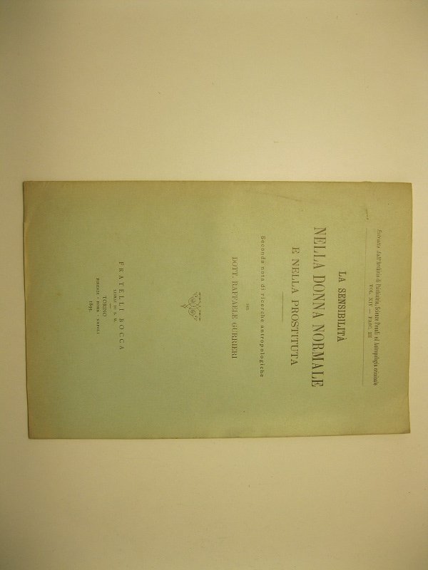 La sensibilita' nella donna normale e nella prostituta. Seconda nota di ricerche antropologiche | Libri antichi e moderni | Guerrieri Raffaele