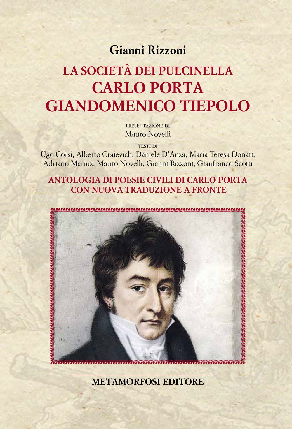 Non si può sapere se Carlo Porta, impiegato contabile e poeta milanese, abbia conosciuto o no Giandomenico Tiepolo, pittore e affrescatore veneziano: l'unico dato storicamente certo è che Porta ha vissuto oltre un anno a Venezia, nel 1798-99, quando il pittore viveva ritirato nella sua piccola villa di Zianigo ma continuava a lavorare nella città lagunare. Anche se non si sono mai conosciuti, però, esistono singolari consonanze nelle loro opere, dovute in parte a fattori storici, al clima sociale di quel periodo tumultuoso, perennemente in bilico tra rivoluzione e restaurazione, ma forse ancora di più alla comune forza satirica unita alla sensibilità nell'affrontare i temi umani e politici dell'epoca. La poesia in lingua milanese di Carlo Porta e le creazioni di Giandomenico Tiepolo sono praticamente contemporanee, descrivono e interpretano, nella loro specifica genialità, le due più importanti società italiane di fine Settecento e degli albori dell'Ottocento, quella della Lombardia e quella del Veneto, regione che nel 1797 perde la sua secolare libertà. Tiepolo ha scelto come suo "portavoce" la maschera di Pulcinella - ereditata in parte dagli affreschi del padre Giambattista; Porta il "buseccone", il popolano milanese di tanto cuore e di altrettanta sfortuna, eterna vittima di quelli più grossi di lui, a partire dagli stranieri che si alternano nel dominio dei nostri paesi. Un personaggio declinato in vari nomi, Giovannin Bongee, Ninetta del Verzee, Marchionn di gamb avert. Pulcinella è "la" maschera universale per eccellenza, l'unica che nel mondo moderno ha conservato una prepotente presenza e una sempre rinnovata vitalità, come già notava Benedetto Croce, mentre tutte le altre maschere sono state lentamente dimenticate o confinate in ambiti regionali. Testi di: Ugo Corsi, Albert Craievich, Daniele D'Anza, Maria Teresa Donati, Adriano Mariuz, Mauro Novelli, Gianni Rizzoni, Gianfranco Scotti. Presentazione di Mauro Novelli.