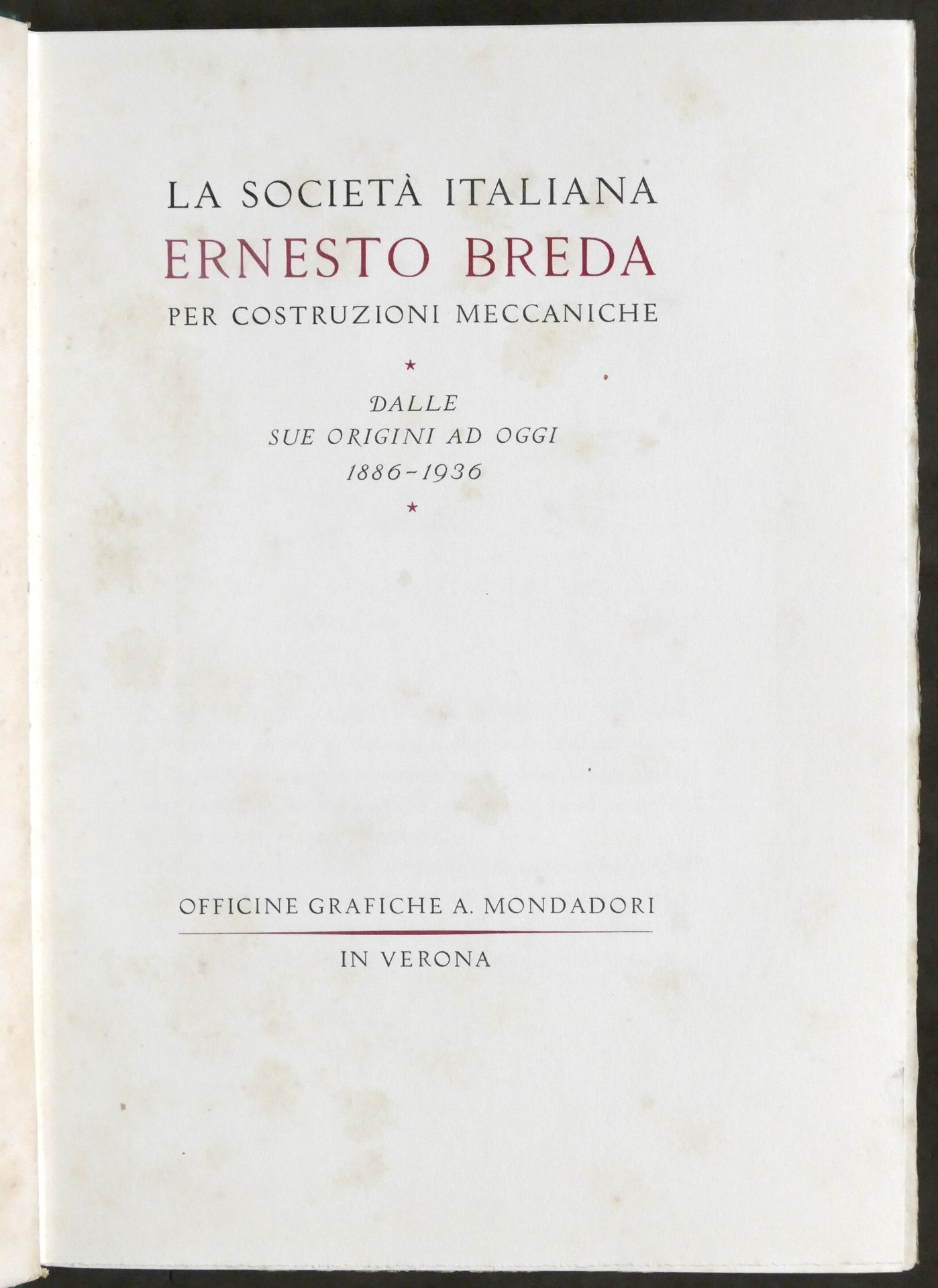 La Società italiana Ernesto Breda dalle sue origini ad oggi 1886-1936 - ed. 1936 | Libri antichi e moderni |