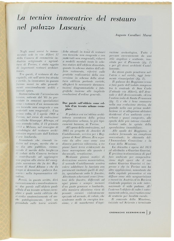 LA TECNICA INNOVATRICE DEL RESTAURO NEL PALAZZO LASCARIS. (stralcio). | Libri antichi e moderni | Cavallari Murat Augusto.