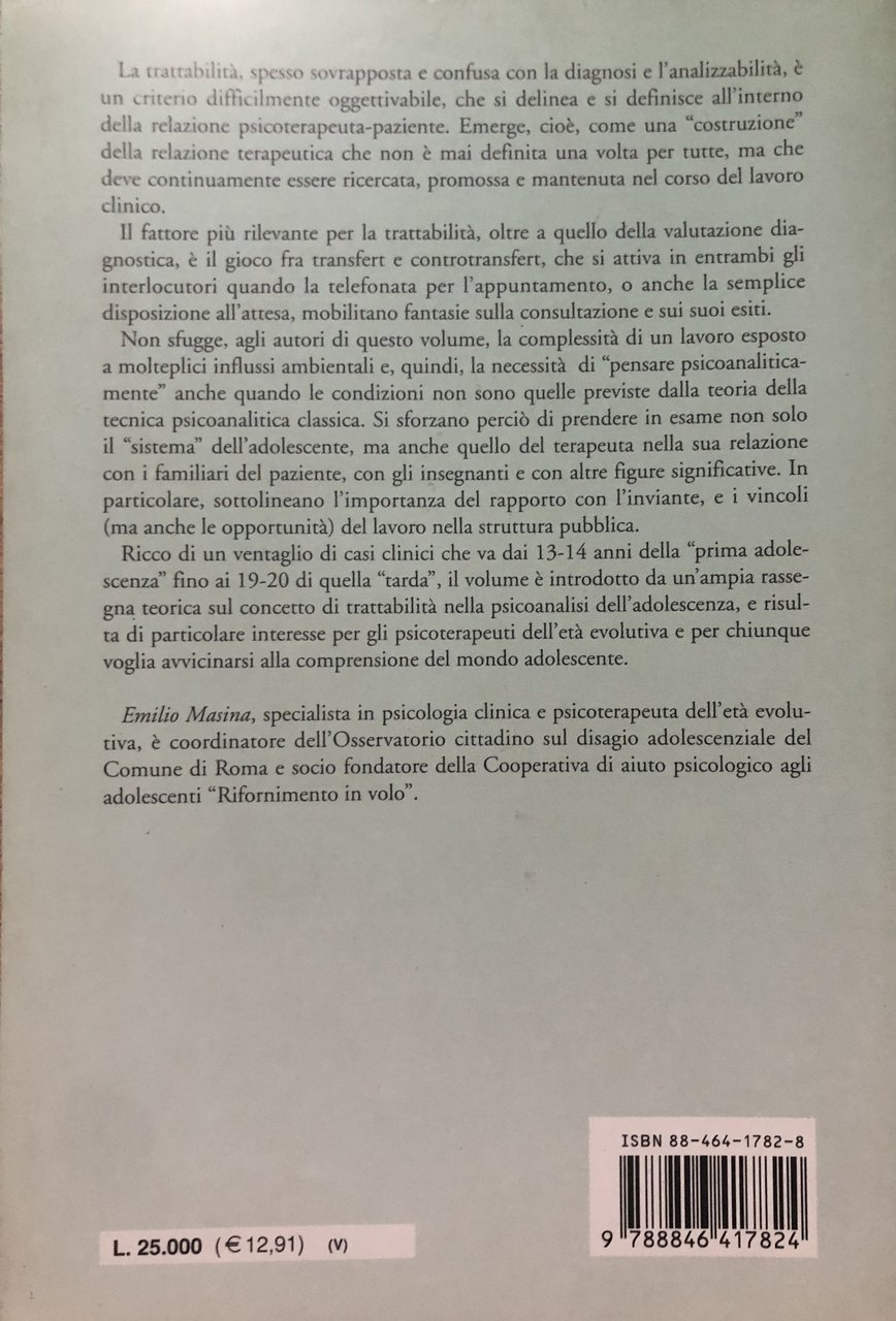 La trattabilità in adolescenza. Problemi nella psicoterapia psicoanalitica | Libri antichi e moderni | Emilio Masina, ,Emilio Masina