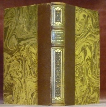 - Auteur, titre et ornementations dorés au dos, plats papier marbré, couverture conservée.