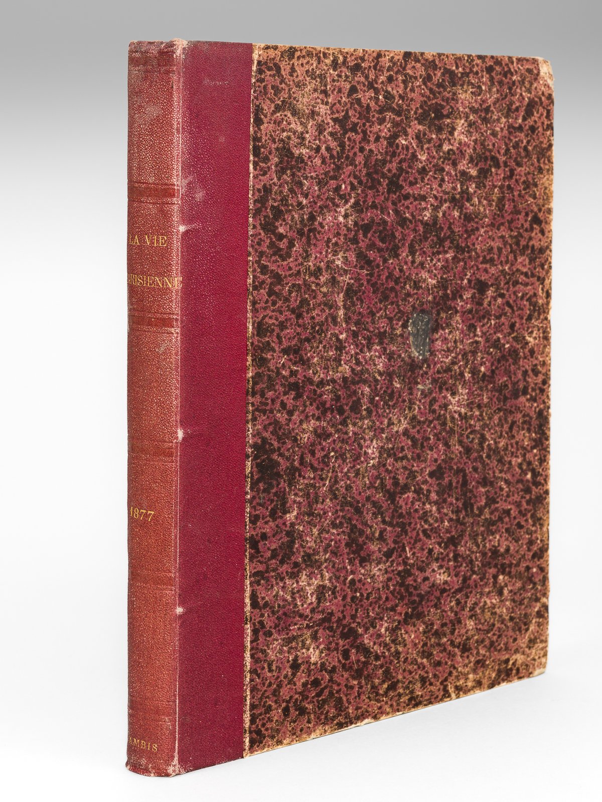 Dirigé par Marcelin, 1 vol. in-folio reliure demi-percaline marron, nom "Cambis" au dos en queue, La Vie Parisienne. Année 1877. 15e Année (Du Numéro 1 du 6 janvier 1877 au 29 décembre 1877), 1 f., 738 pp. Rare exemplaire bien complet de l'intégralité des numéros de l'année 1877. Etat très satisfaisant (plats et coins frottés, petits accrocs sans mq. à 2 ff., qq. rouss.).