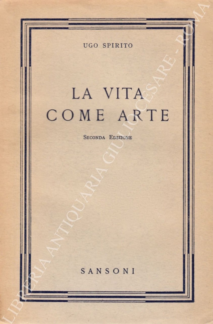 La vita come arte | Libri antichi e moderni | Spirito Ugo (1896-1979)