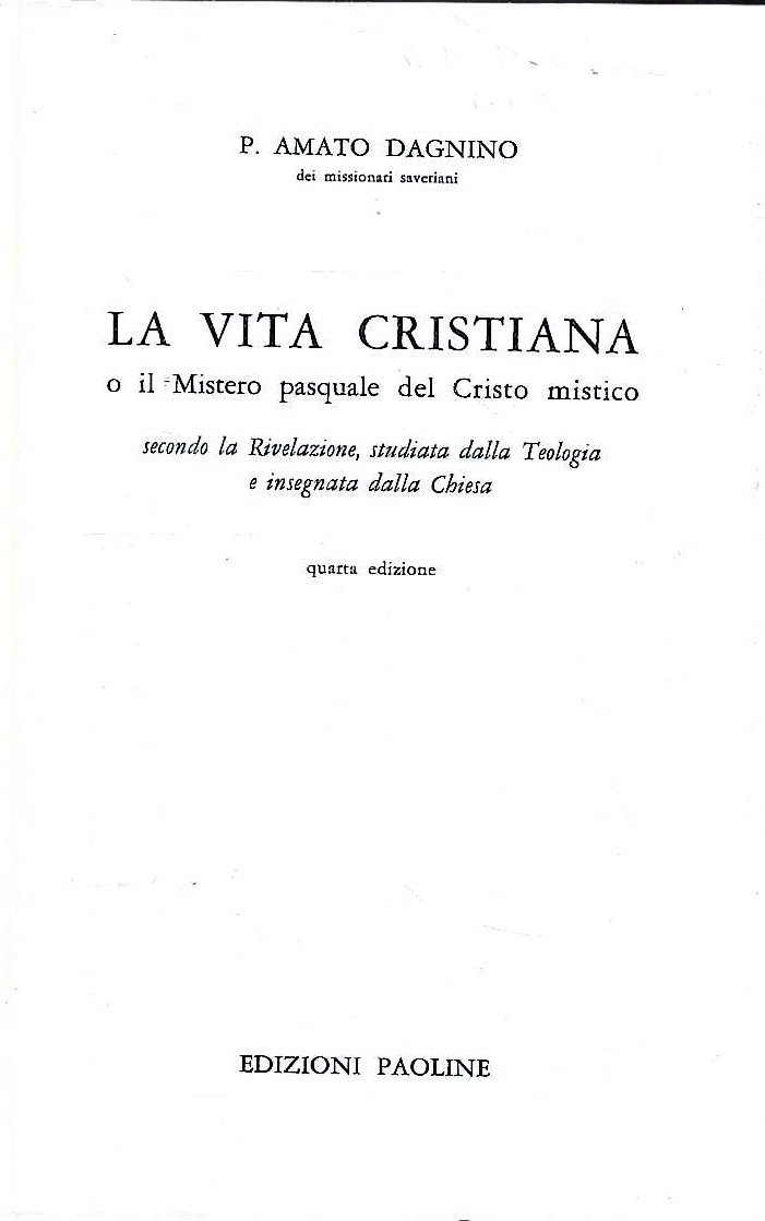 La vita cristiana o il Mistero pasquale del Cristo mistico secondo la Rivelazione, studiata dalla Teologia e insegnata dalla chiesa | Libri antichi e moderni | Dagnino, Amato, ,Dagnino, Amato