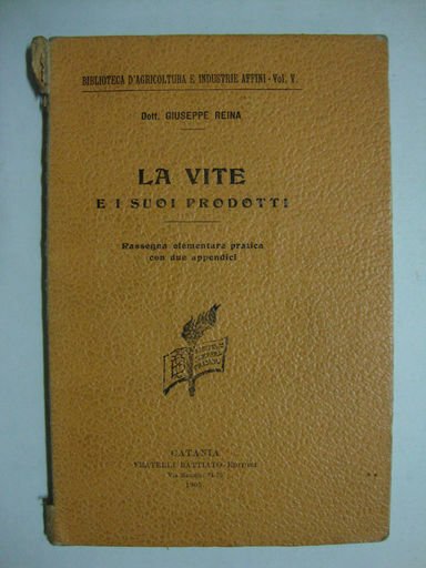 La vite e i suoi prodotti (Rassegna elementare pratica con due appendici) | Libri antichi e moderni | Reina Giuseppe