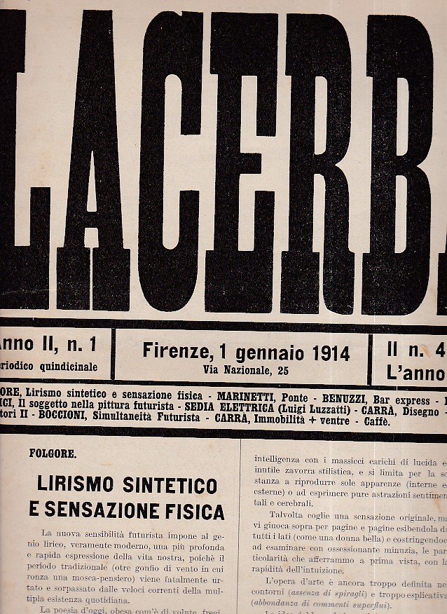 Lacerba. Anno II, n. 1. Firenze, 1 gennaio 1914 | Libri antichi e moderni |
