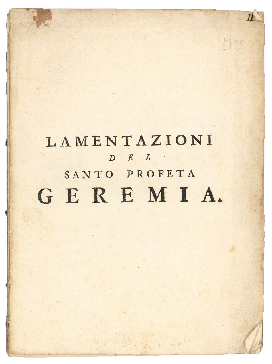 Lamentazioni del santo profeta Geremia espresse ne' loro dolenti affetti da Benedetto Menzini canonico di Sant'Angelo, e tradotte dal greco, e poi riformate dall'ebraico dall'abate Anton Maria Salvini gentiluomo Fiorentino, e lettor pubblico di lettere greche [...]. | Libri antichi e moderni | LAMENTAZIONI DEL SANTO PROFETA GEREMIA