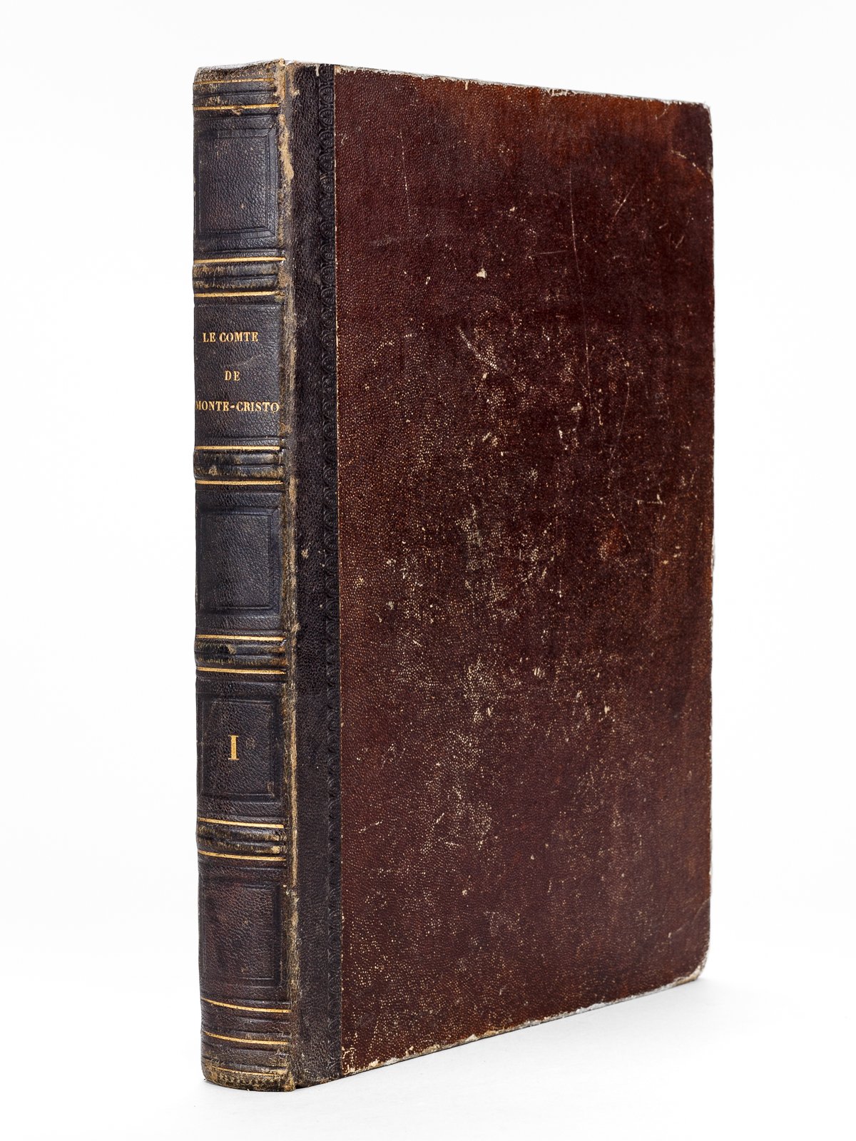 1 vol. in-4 reliure de l'époque demi-chagrin noir, dos à 4 nerfs doubles, Bureaux du Journal Le Siècle, Paris, 28 septembre 1845 puis 1er février 1846 (premières livraison), 1846 en page de titre ), 2 ff. (titre et tables), frontispice (portrait d'Alexandre Dumas), 408 pp. avec 29 planches hors texte Très rare exemplaire illustré de l'édition du Journal "Le Siècle", l'une des toutes premières éditions du Comte de Monte-Cristo. Publiée dans le cadre des "Oeuvres complètes d'Alexandre Dumas" dans le Supplément au Journal "Le Siècle", cette édition parut immédiatement après la publication en feuilleton dans "Le Journal des Débats" d'août 1844 à janvier 1845 et après l'édition originale publiée en 1845-1846 par Baudry et Pétion. Elle est probablement contemporaine de l'édition de l'Echo des Feuilletons, présentée habituellement comme la première édition illustrée, publiée en deux volumes en 1846 et illustrée des 30 planches hors textes (frontispice et 29 pl.) par Gavarni et Tony Johannot, que l'on retrouve, à grands marges, dans le présent exemplaire. L'édition de l'Echo des Feuilletons est de format sensiblement plus réduit (grand in-8, 16 x 25 cm), l'édition du Siècle étant de format in-4 (21 x 29,7 cm en marges). On notera que si la page de titre publiée a posteriori orthographie correctement "Monte-Cristo", les titres et les en-têtes des numéros l'orthographient "Monte-Christo". Bon exemplaire bien complet (sans la plupart des serpentes, indication de tomaison "1", l'ouvrage correspondant au tome premier des Oeuvres complètes, qq. petits frott. et rouss. mais bel état général, rare pour cette édition).
