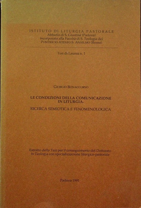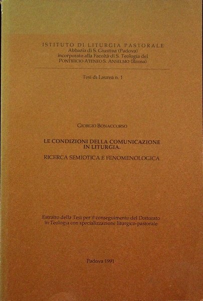 Le condizioni della comunicazione in liturgia: ricerca semiotica e fenomenologica. | Libri antichi e moderni | Bonaccorso, Giorgio.