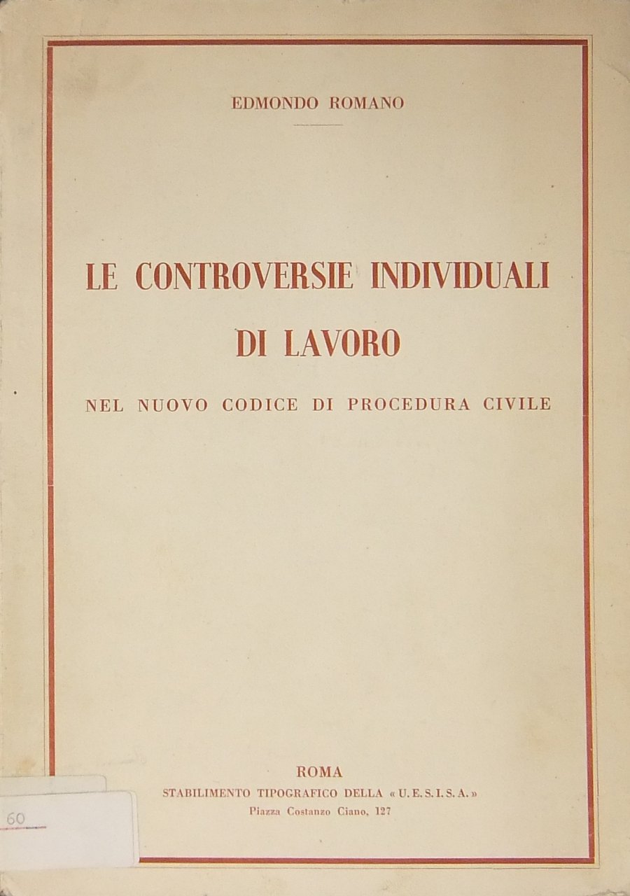 Le controversie individuali di lavoro nel nuovo codice di procedura civile | Libri antichi e moderni | Romano Edmondo