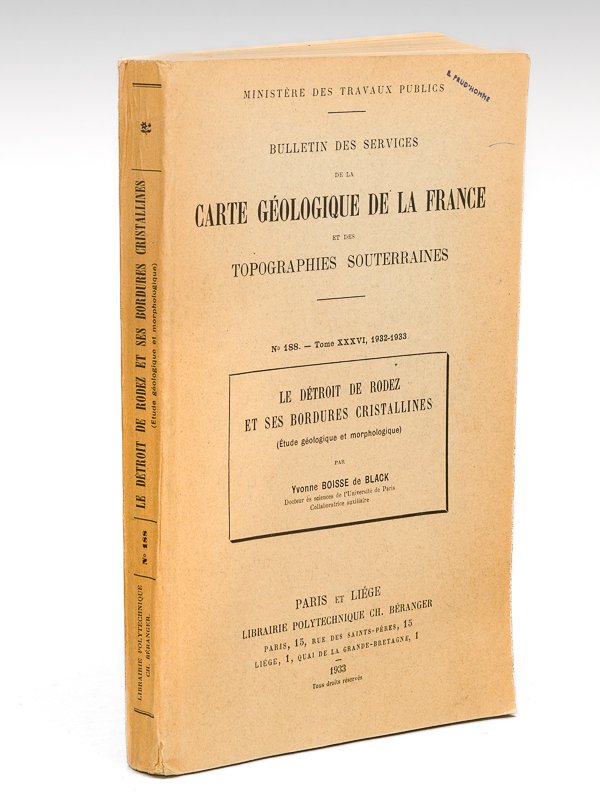 Le Détroit de Rodez et ses Bordures Cristallines (Etude géologique et morphologiques). Bulletin des Services de la Carte Géologique de la France et des Topographies Souterraines. N° 188 - Tome XXXVI, 1932-1933 | Libri antichi e moderni | Boisse De Black, Yvonne