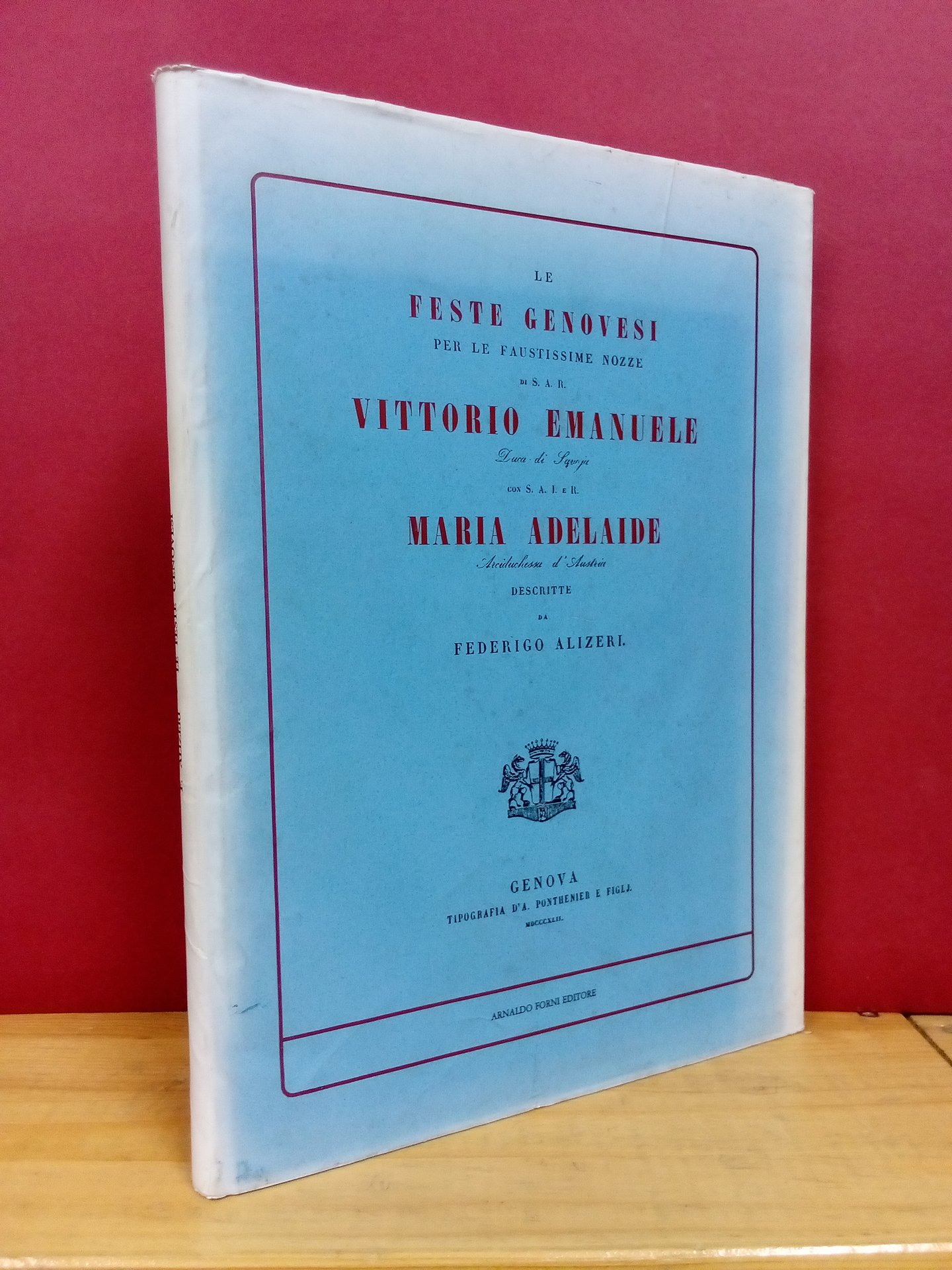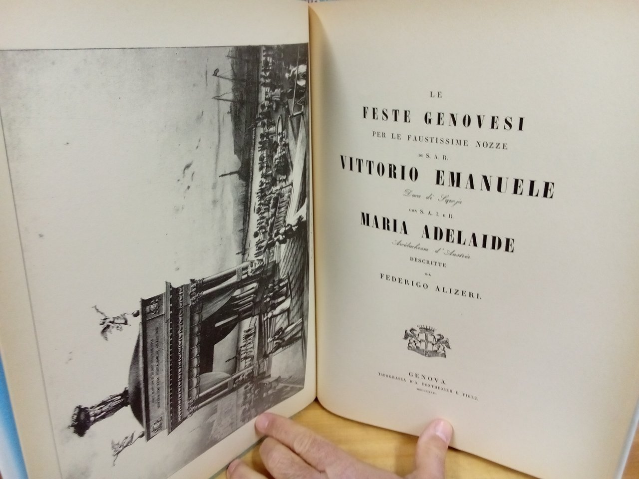 Le feste genovesi per le faustissime nozze di S. A. R. Vittorio Emanuele con S. A. I. e R. Maria Adelaide Arciduchessa d'Austria. | Libri antichi e moderni | Alizeri, Federigo