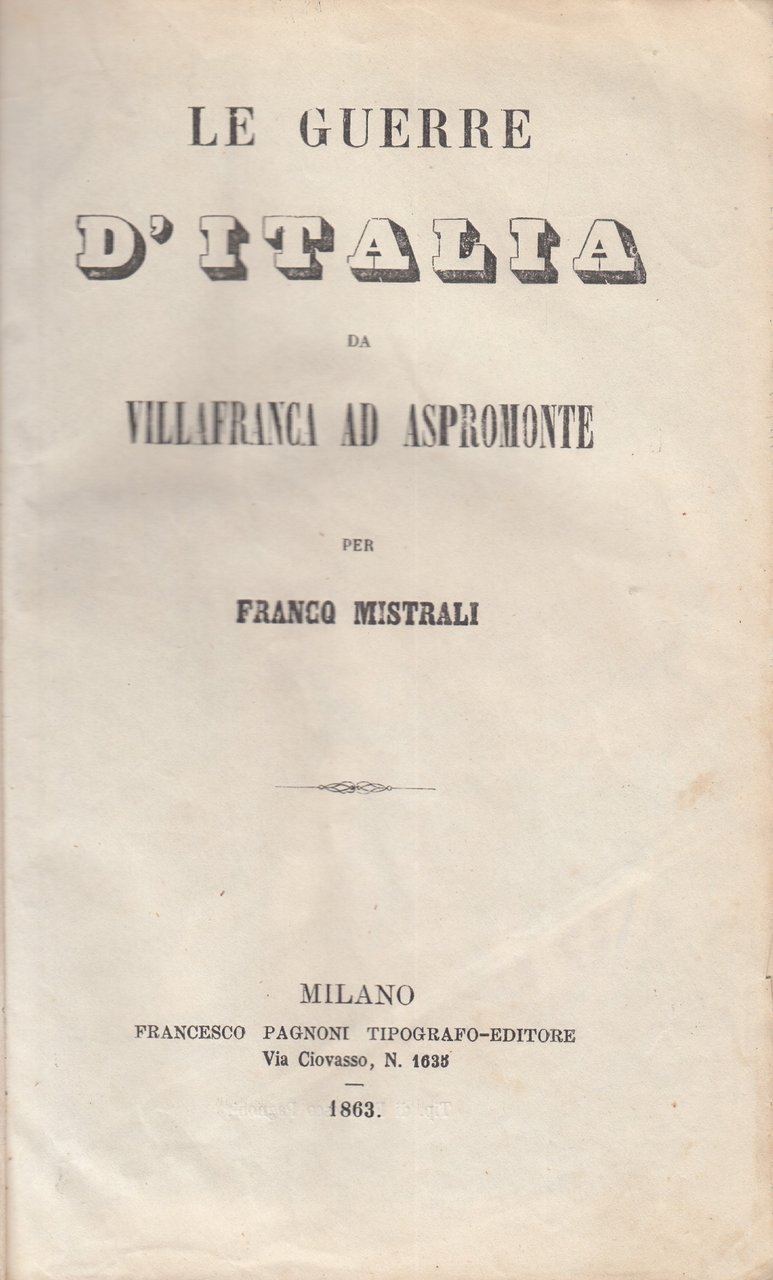 Le guerre d'italia da Villafranca ad Aspromonte | Libri antichi e moderni | Franco Mistrali, ,Franco Mistrali
