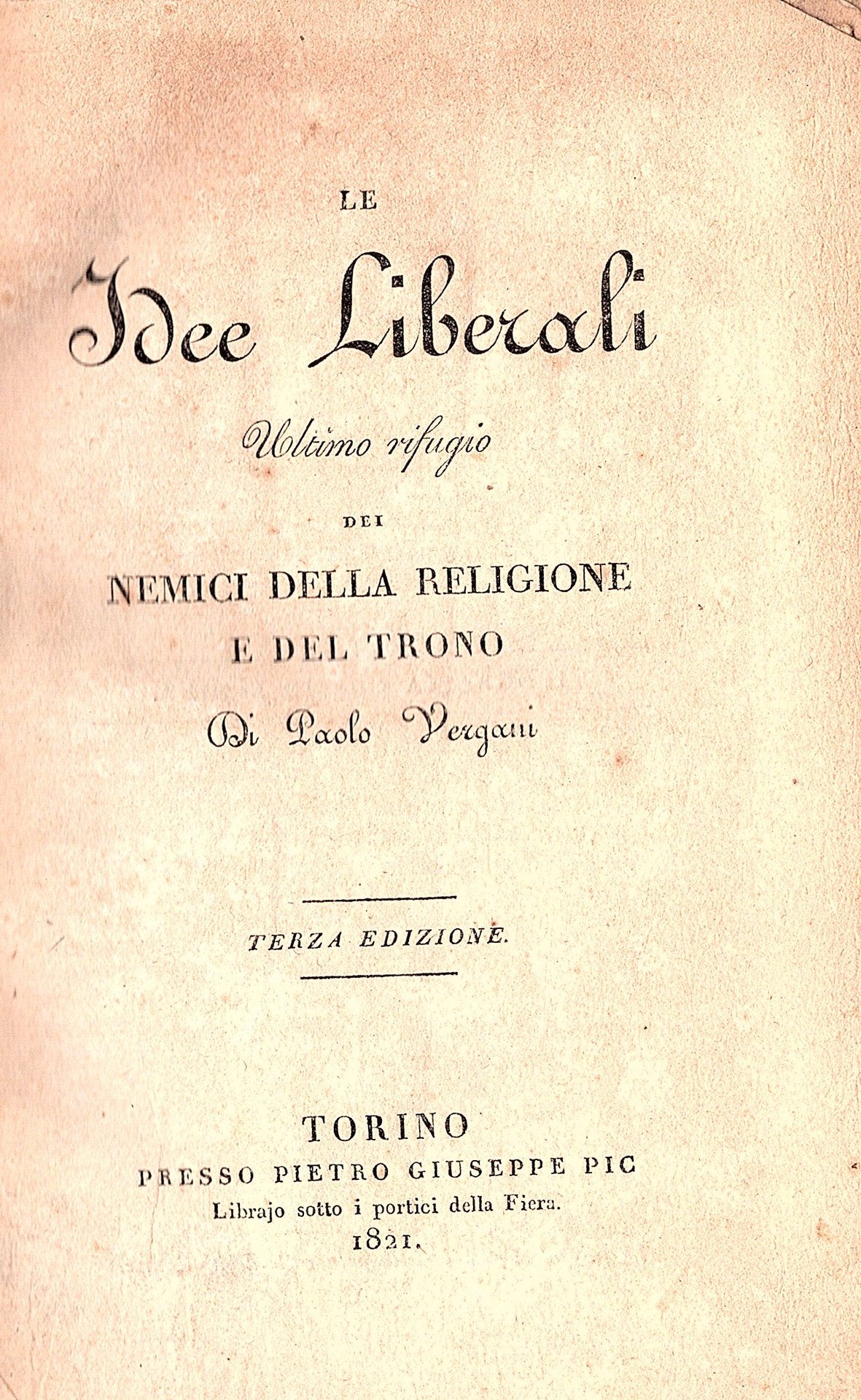 Le Idee Liberali. Ultimo rifugio dei nemici della religione e del trono. Terza edizione | Libri antichi e moderni | Vergani Paolo