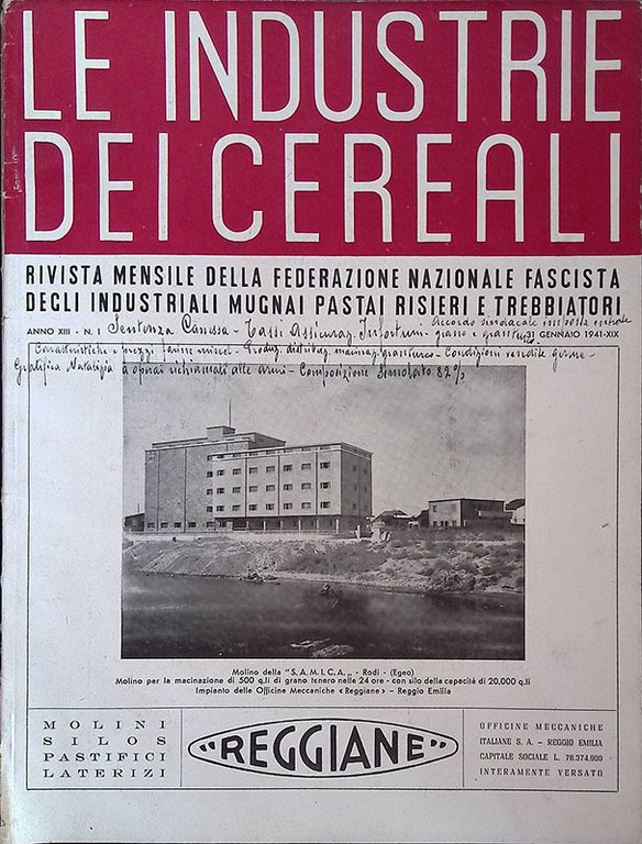 Le Industrie dei Cereali. Anno XII n.1, 31 gennaio 1941
