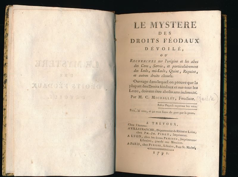 Le mystère des droits féodaux dévoilé ou recherches sur l'origine et les abus des cens, servis, et particulièrement des lods, mi-lods, quint, requint et autres droits casuels | Libri antichi e moderni | Michallet C. Feudiste