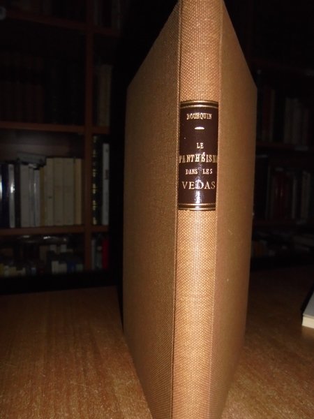 A. Bourquin. Paris, Librairie Fischbacher, 1886. Le Panthéisme dans les Védas. Exposition et critique du Panthéisme Védique et du Panthéisme en géneral. In-8°, legatura nuova in tutta tela con titolo entro tassello al dorso. 270, (1) pp. Ottimo esemplare. Neg. mob. Bol. S