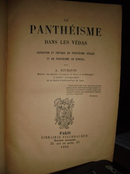 Le Panthéisme dans les Védas. Exposition et critique du Panthéisme Védique et du Panthéisme en géneral | Libri antichi e moderni | A. Bourquin