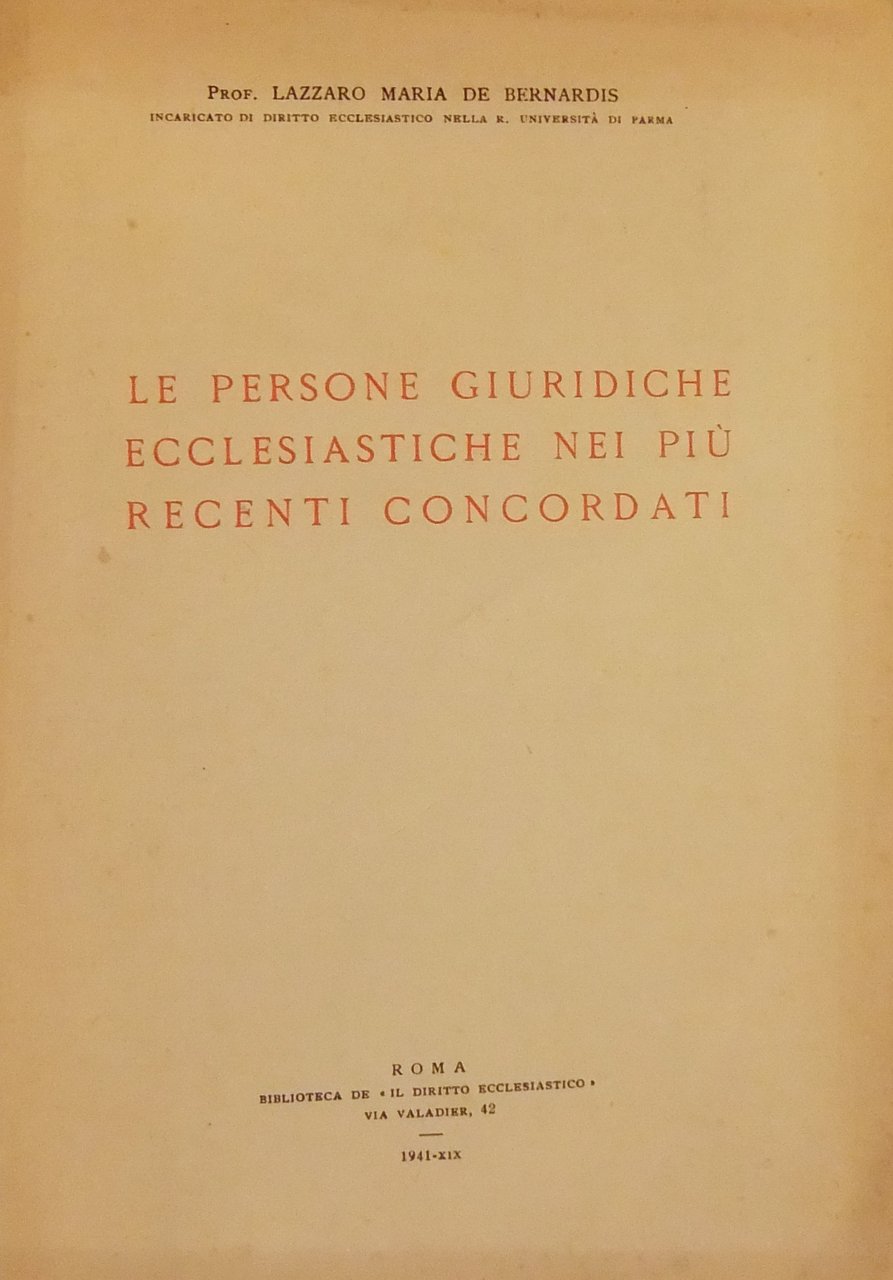 Le persone giuridiche ecclesiastiche nei più recenti concordati | Libri antichi e moderni | De Bernardis Lazzaro Maria