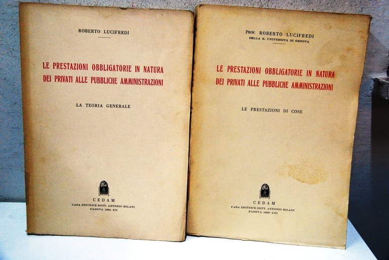Lucifredi Le prestazioni obbligatorie in natura dei privati alle pubbliche amministrazioni ? 2 volumi opera completa. CEDAM 1934 Buone Morbida .