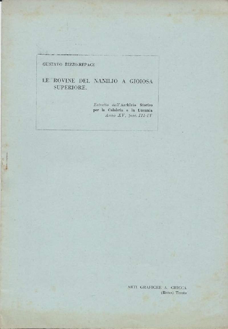 LE ROVINE DEL NANILO A GIOIOSA SUPERIORE | Libri antichi e moderni | Rizzo-Repace Gustavo