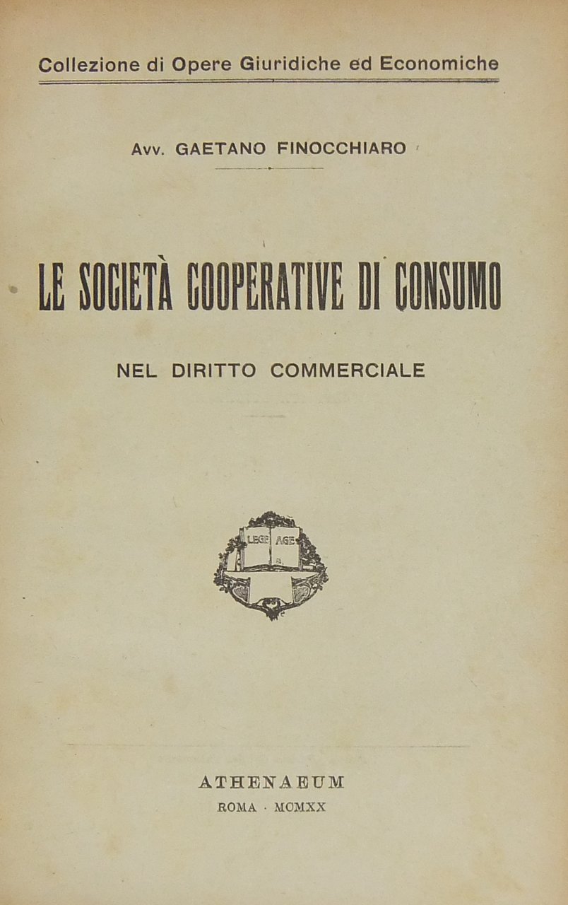 Le società cooperative di consumo nel diritto commerciale | Libri antichi e moderni | Finocchiaro Gaetano