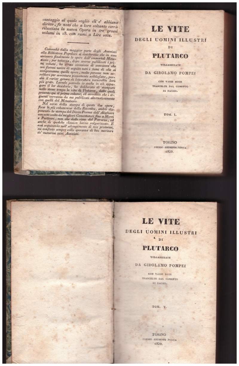 LE VITE DEGLI UOMINI ILLUSTRI DI PLUTARCO VOLGARIZZATE DA GIROLAMO POMPEI con varie note trascelte dal commento di Dacier | Libri antichi e moderni | Plutarco