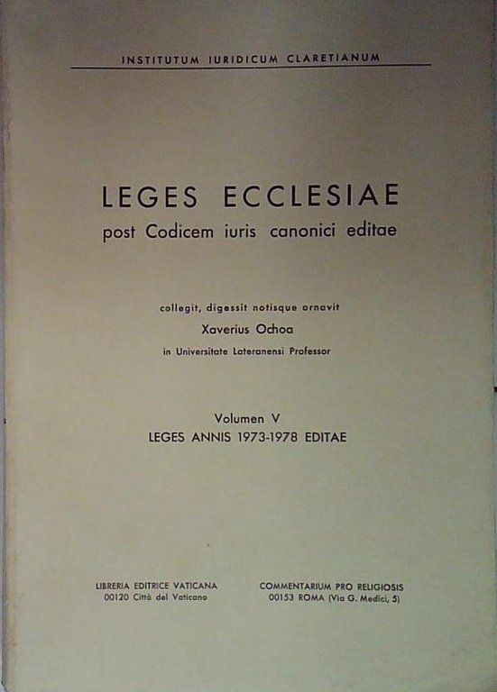leges ecclesiae post codicem iuris canonici editae v leges annis 1973 1978 edita | Libri antichi e moderni |