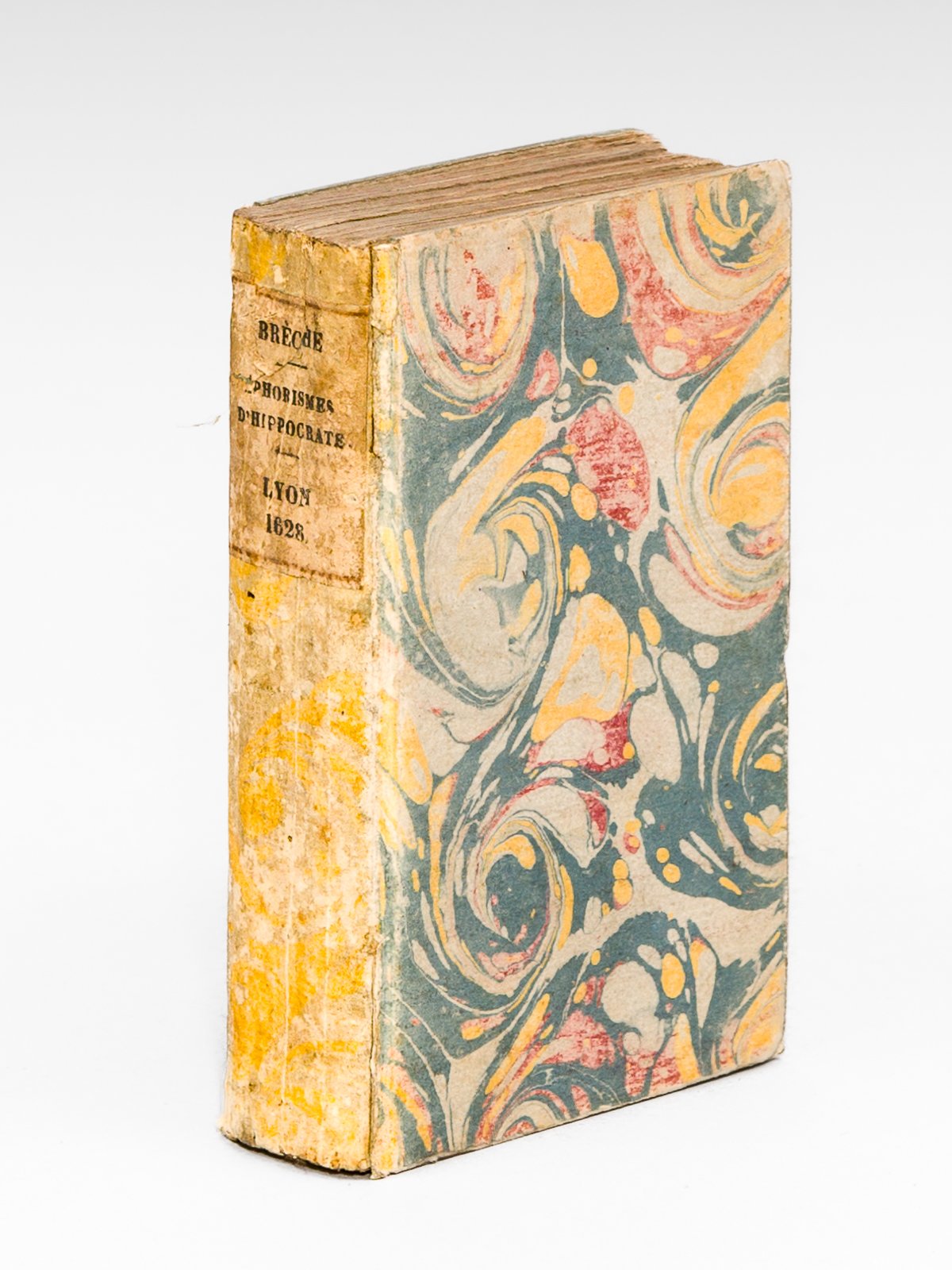 Traduicts de Grec en François par M. I. Breche, Avec Annotations sur ledict premier livre ensemble certaines Paraphrases servans de brief commentaire, depuis le second livre, iusques à la fin du septième, faicts par le dict Breche. Ensemble les Aphorismes de I. Damascene, Medecin Arabe, Ensemble un Epitome sur les trois livres des Temperamens de Galien, Dernière Edition, reveuë & corrigée, 1 vol. in-16 cartonnage début XIXe, Chez Claude Rigaud & Claude Obert, à Lyon, 1628, 2 ff. n. ch., 254 ff. Signatures : A8-Z8, Aa8-Ii8 C'est Jean Brèche de Tours (1514-1583) qui avait proposé la première traduction française des Aphorismes d'Hippocrate en 1550. Etat très satisfaisant (mouill. au f. de titre, bon état par ailleurs, ex-libris en garde). Edition lyonnaise non signalée par Maloney & Savoie, Cinq cents ans de bibliographie Hippocratique