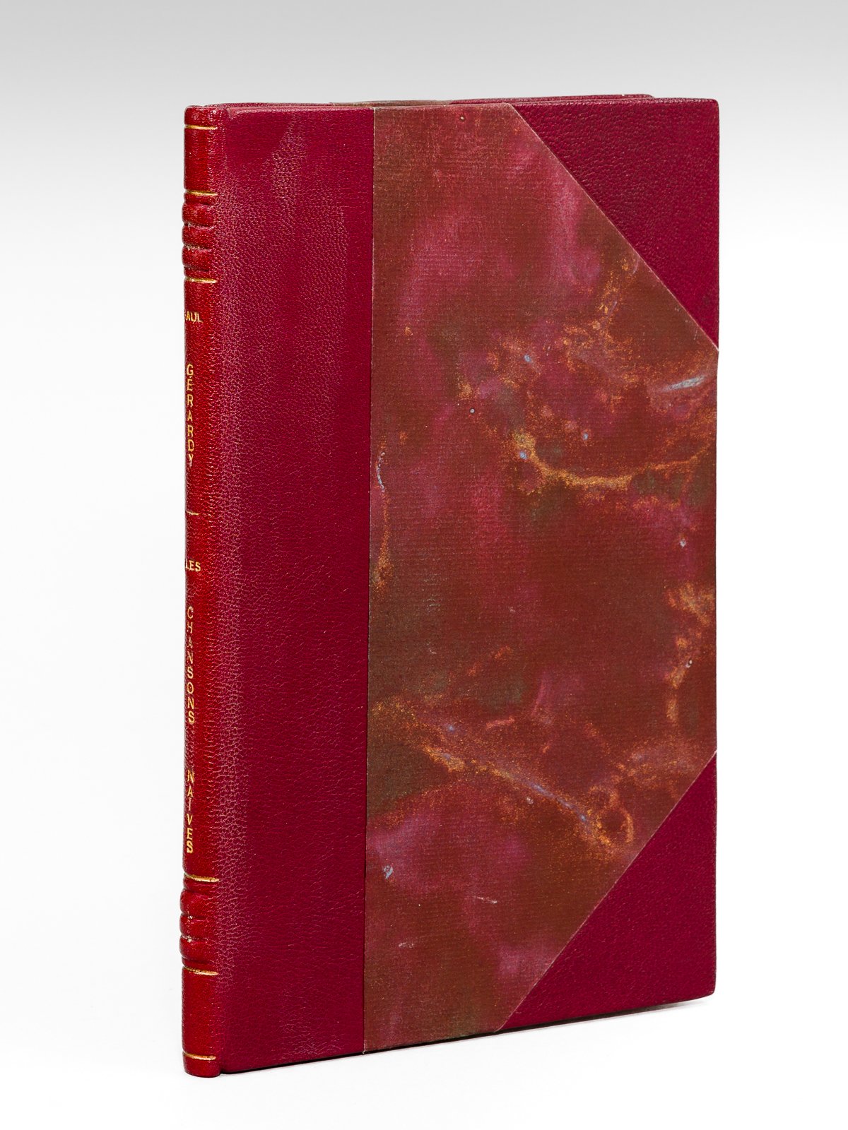 1 vol. in-8 reliure postérieure demi-chagrin maroquiné à coins bordeaux, dos à 2 nerfs triple, couvertures conservées, Des presses de Floréal, s.l. [ Liège ], 1892, 81 pp. et 1 f. n. ch. Très rare exemplaire du tout premier recueil de poésies publié par Paul Gérardy (1870-1933), enrichi d'un très remarquable dédicace du poète belge "A Monsieur Anatole France, respectueux hommage". Bon exemplaire (qq. rares rouss., bel exemplaire par ailleurs, ex-libris en garde) de cette véritable rareté, d'une provenance remarquable.