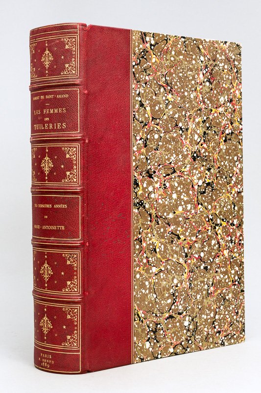 1 vol. fort in-4 reliure de l'époque demi-chagrin rouge, dos à 5 nerfs dorés orné, tête dorée, couvertures conservées, E. Dentu, Paris, 1889, 715 pp. Bon exemplaire de la version grand format (à ne pas confondre avec les versions in-8, in-12 ou in-18), richement illustrée (qq. rouss., très bon état par ailleurs). Imbert de Saint-Amand, diplomate et historien, écrivit de nombreux ouvrages sur l'histoire de la royauté en France au XVIIIe et XIXe.