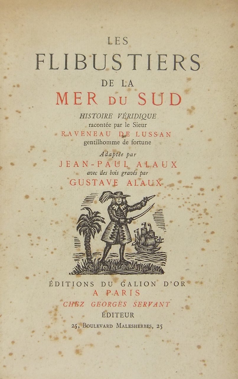 Les flibustiers de la Mer du Sud. Histoire veridique racontée par le Sieur Raveneau de Lussan. Adaptée par Jean-Paul Alaux avec des bois gravés par Gustave Alaux