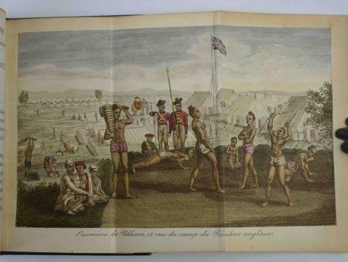 Due volumi di cm. 13, pp. (4) xv (1) 202; (4) 238. Con 10 tavole fuori testo incise in rame e finemente colorate, di cui 6 ripiegate. Solida legatura coeva in cartonato rigido, dorsi lisci con filetti, fregi e titoli in oro. Esemplare genuino e ben conservato, con sole rade fioriture. Interessante relazione su questa popolazione dell'India.