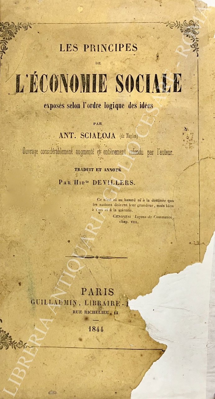 Les principes de l'economie sociale exposes selon l'ordre logique des idees | Libri antichi e moderni | Scialoja Antonio (1817-1877)