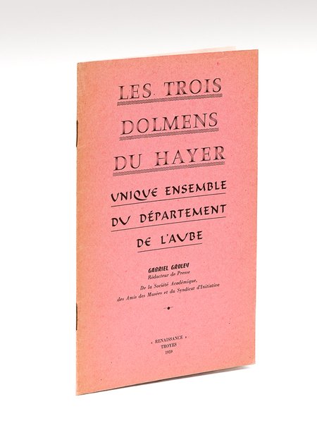 Les trois dolmens du Hayer. Unique ensemble du Département de l'Aube : Vamprin - Les Fossés blancs - Bercenay [ Livre dédicacé par l'auteur ] | Libri antichi e moderni | Groley, Gabriel