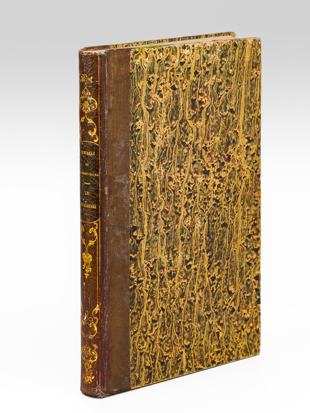 1 vol. in-8 reliure de l'époque demi-veau brun, dos lisse orné en long, Dauvin et Fontaine, Paris, 1844, 2 ff., 348 pp. Rare exemplaire de l'édition originale, dédicacé par les deux auteurs à l'écrivain et journaliste Louis Ulbach. C'est au retour d'un voyage en Italie, Grèce et Syrie, avec Henri Chevreau, fils du directeur de sa pension de Saint-Mandé, que Léon Laurent-Pichat (1823-1886) et son ami firent paraître ce recueil de poésie, avec la bénédiction de Victor Hugo. Après la Révolution de 1848, Laurent-Pichat collaborera au "Propagateur de l'Aube" fondé par l'écrivain Louis Ulbach, auquel l'ouvrage est dédicacé. C'est également avec Louis Ulbach , mais aussi Théophile Gautier, Arsène Houssaye et Maxime du Camp qu'il ressuscite la Revue de Paris, où sera bientôt publié "Madame Bovary" de Gustave Flaubert. Etat très satisfaisant (reliure un peu frottée avec très petitsmq. en coiffes, rouss., ex-libris Louis Ulbach en garde). Vicaire, II, 393
