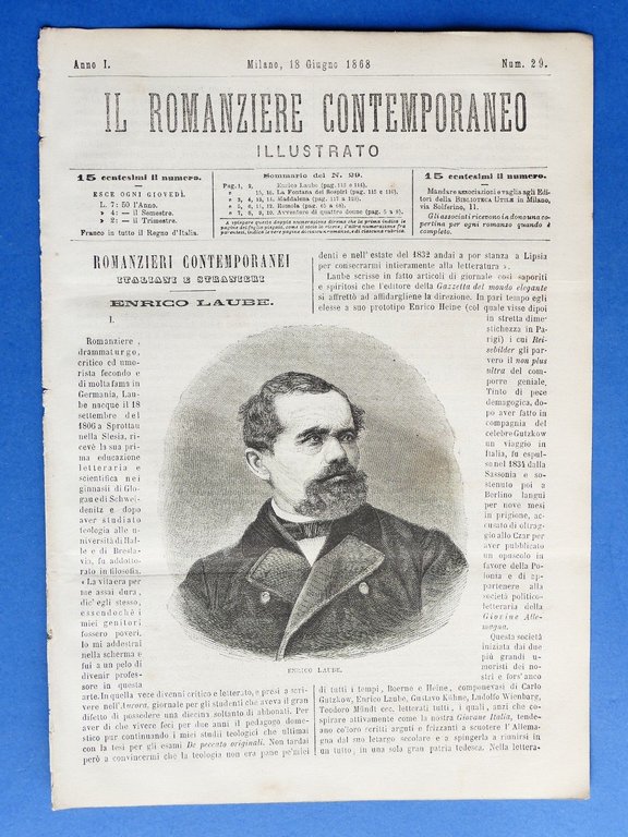 Letteratura Il romanziere contemporaneo illustrato Anno I N° 29 - 1868 E. Laube | Libri antichi e moderni |