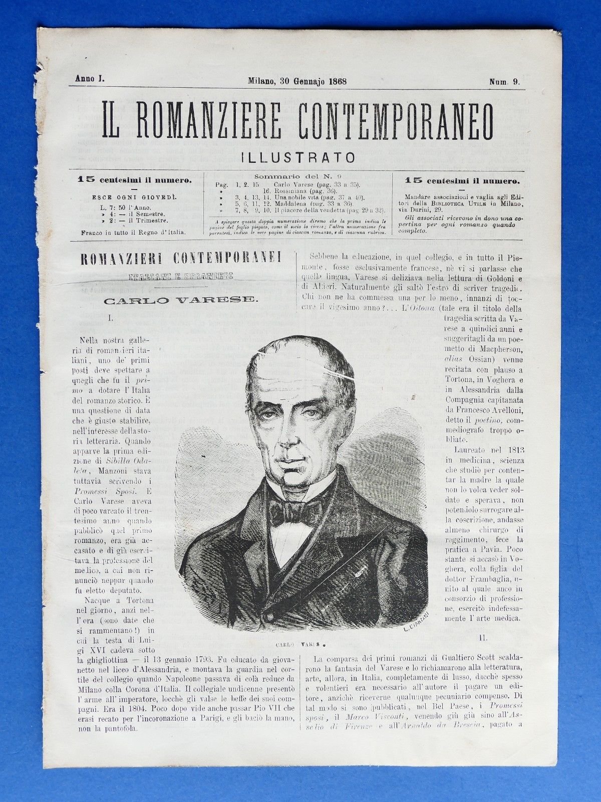 Letteratura Il romanziere contemporaneo illustrato Anno I N° 9 1868 - C. Varese | Libri antichi e moderni |