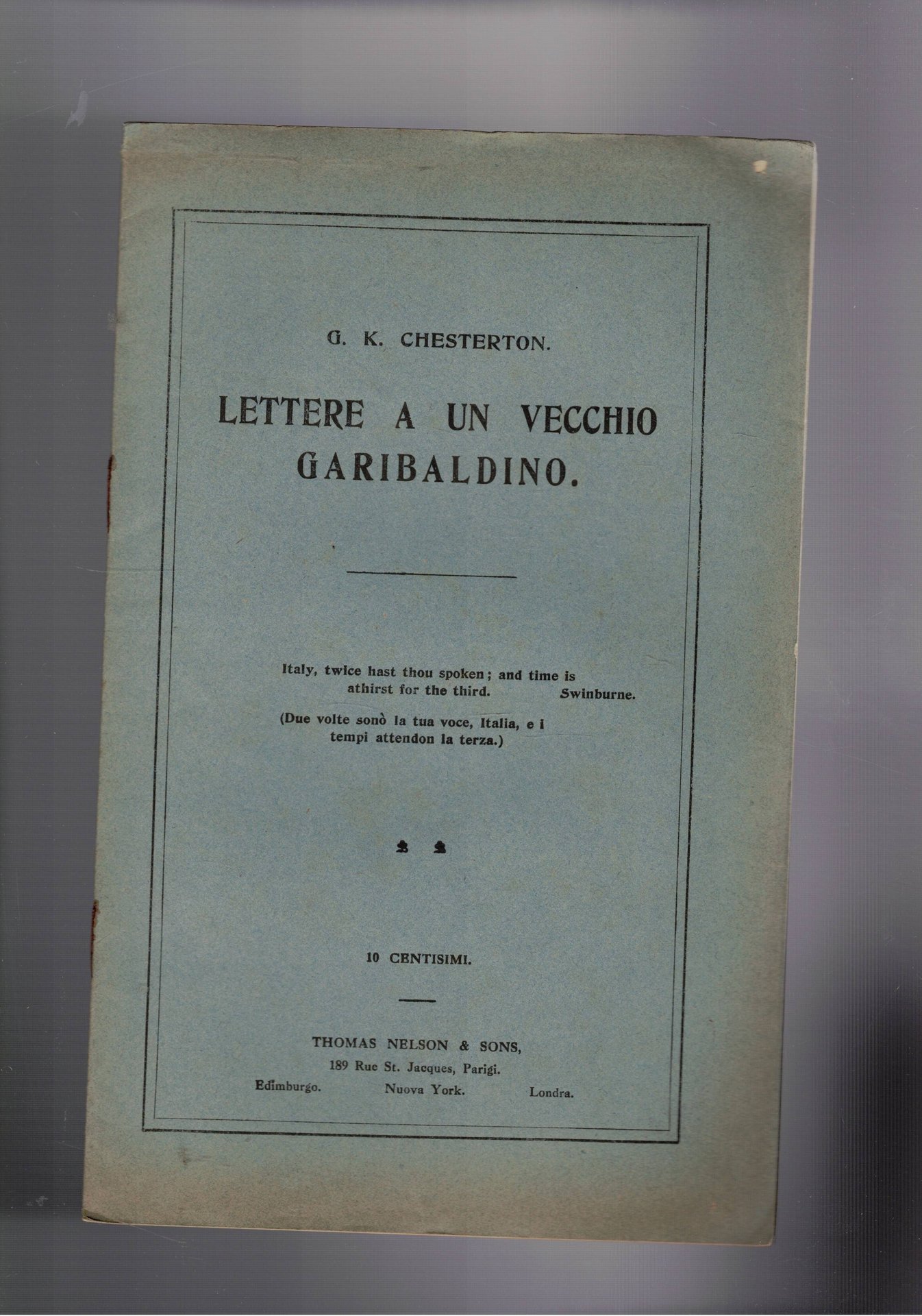 Lettere a un vecchio garibaldino. Lettere che mettono in risalto la pericolosità della Germania. | Libri antichi e moderni | Chesterton G. K.