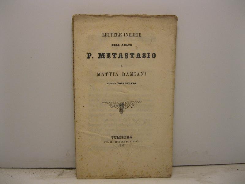 Lettere inedite dell'abate P. Metastasio a Mattia Damiani poeta volterrano | Libri antichi e moderni | Metastasio Pietro, Damiani Mattia