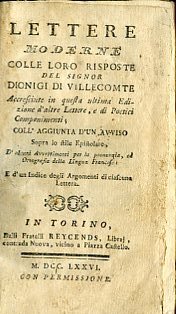 Lettere moderne colle loro risposte accresciute in questa ultima Edizione d'altre Lettere, e di poetici componimenti; coll'aggiunta d'un avviso sopra lo stile epistolare. | Libri antichi e moderni | Villecomte Denis De