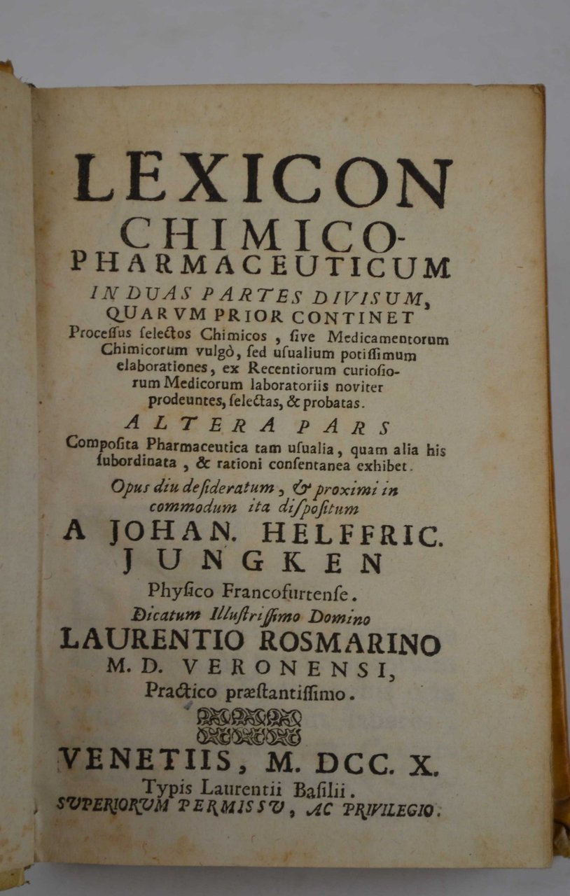 Lexicon chimico-pharmaceuticum in duas partes divisum… | Libri antichi e moderni | Jungken J.H.