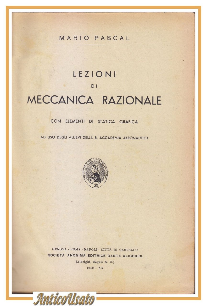 Società editrice Dante Alighieri, 1942. ad uso degli allievi della regia accademia aeronautica. 408 pagine. copertina non editoriale in tutta tela. stato di conservazione: buono (pagine ingiallite, copertina un po' sciupata)