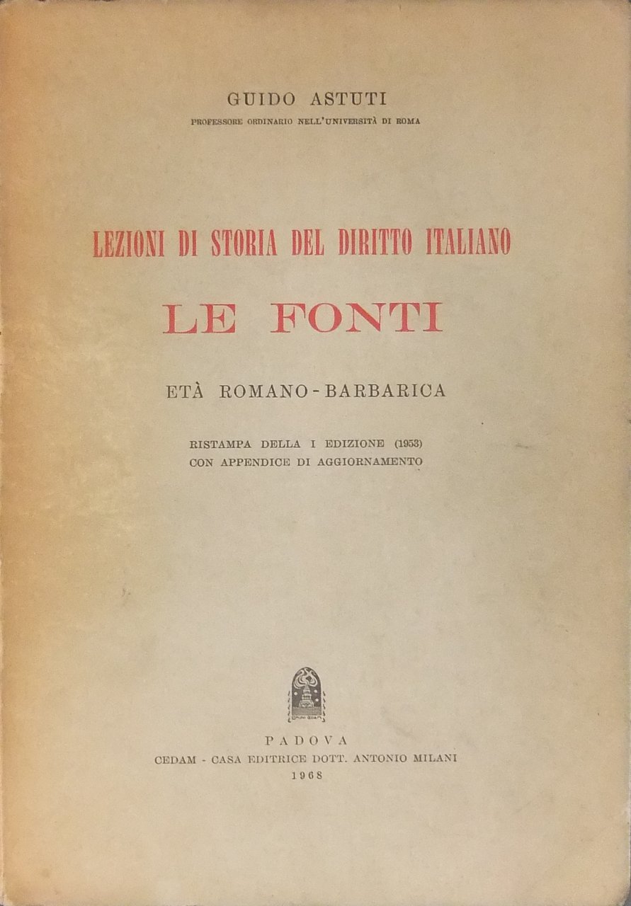 Lezioni di storia del diritto italiano. Le fonti. Età romano-barbarica | Libri antichi e moderni | Astuti Guido