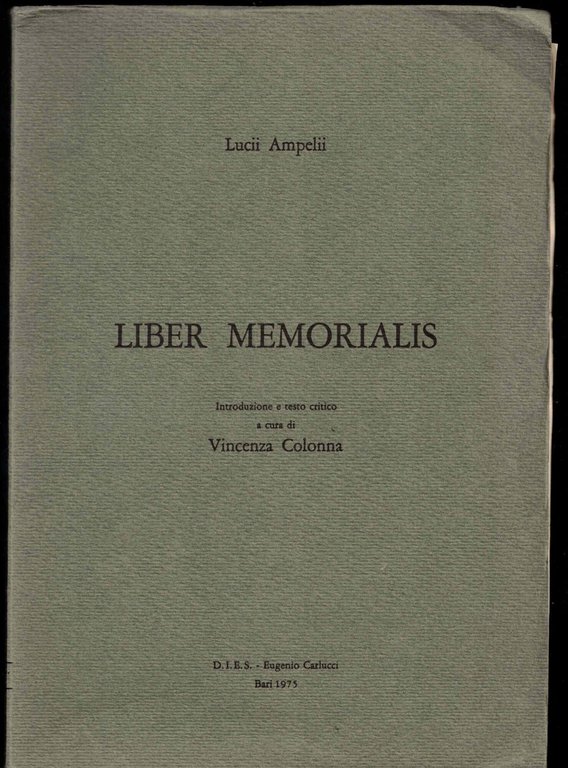 LIBER MEMORIALIS di Lucii Ampelii cura Vincenza Colonna 1975 DIES Carlucci