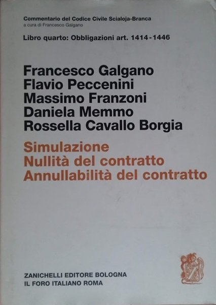 Libro Quarto: Obbligazioni art. 1414-1446 SIMULAZIONE - NULLITA DEL CONTRATTO - ANNULLABILITA DEL CONTRATTO | Libri antichi e moderni | F. Galgano - F. Peccenini - M. Franzoni - Daniela Memmo - Ross, ,F. Galgano - F. Peccenini - M. Franzoni - Daniela Memmo - Ros