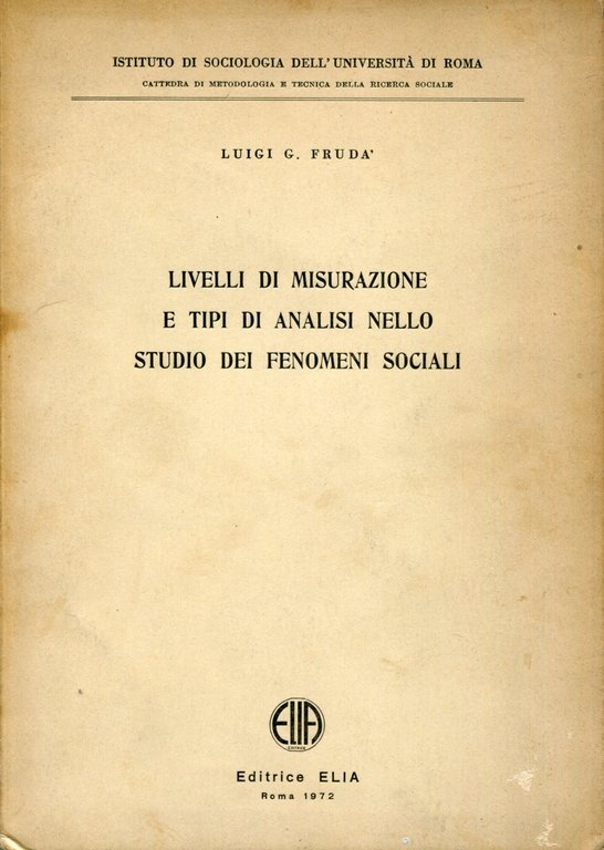 Livelli di misurazione e tipi di analisi nello studio dei fenomeni sociali | Libri antichi e moderni | Frudà, Luigi, ,Frudà, Luigi