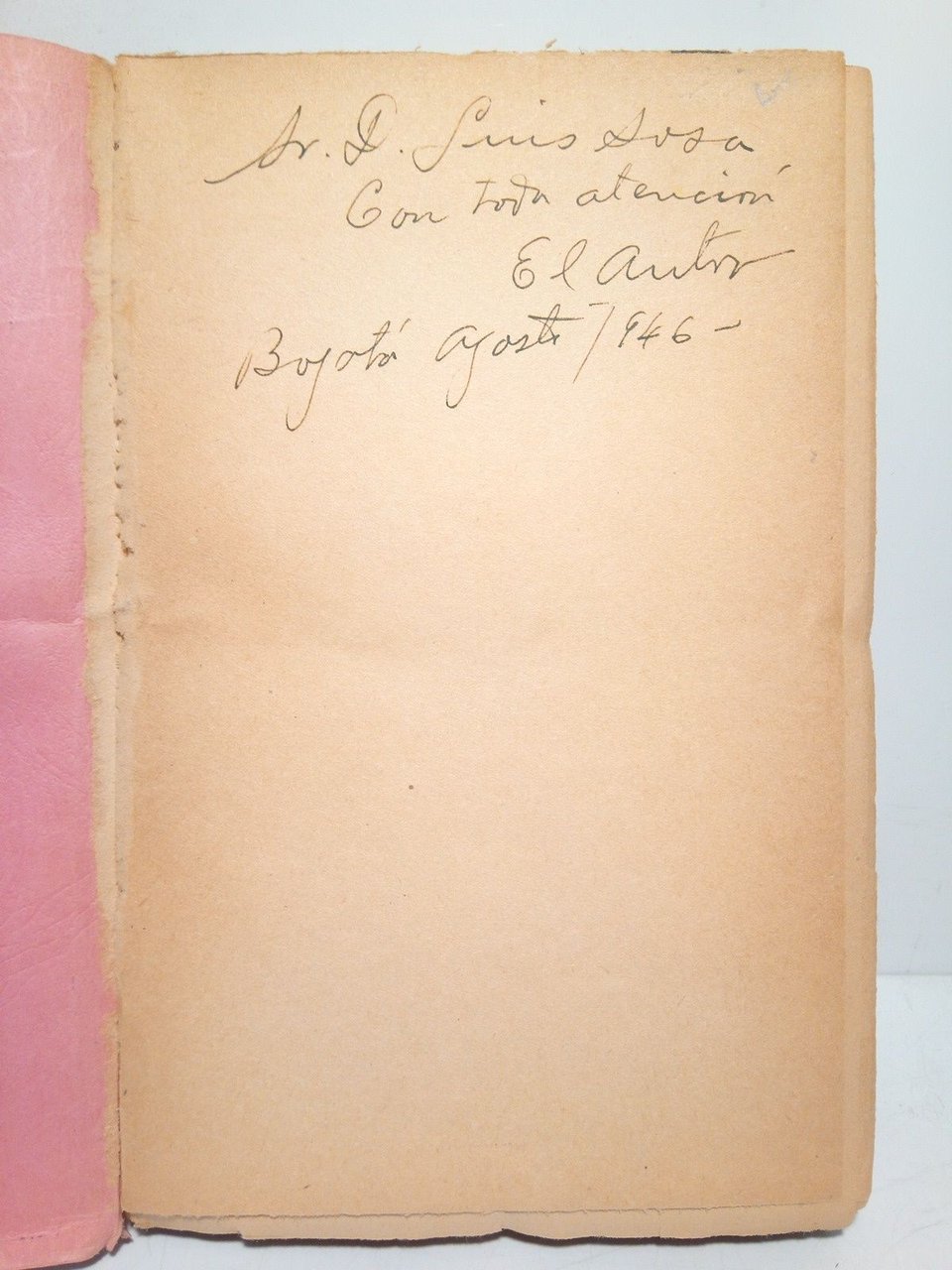 [PRIMERA EDICION].- Bogotá: Editorial A B C, 1941.- 208 p., [2 h.]; 8º mayo0r (20 x 13,1 cm); Intonso; Cartulina Ed. con la cubierta anterior ilustrada por G. Rosales León.- MUY RARO.* Dedicatoria autógrafa del autor al: Dr. D. Luis Sosa con toda atención. El Autor, Bogotá Agosto, 1946. En muy buen estado. Tan solo tiene reparados dos pequeños desgarros en el margen superior de la hoja final del índice, quedando muy bien. LITERATURA, ESTUDIOS LITERARIOS, FILOSOFÍA Y PENSAMIENTO IBEROAMERICANO EN GENERAL